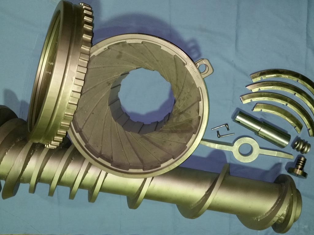 As with all machinery, parts wear out and breakdown. At Flocut Engineering, we can overhaul your Gear Boxes, Drive Units, Shafts, Splines, Gears, Agers, Feed Screws, Worn Housingsand Barrels. We employ various welding, grinding and machining techniques capable of full overhaul from simple components to complete machines.